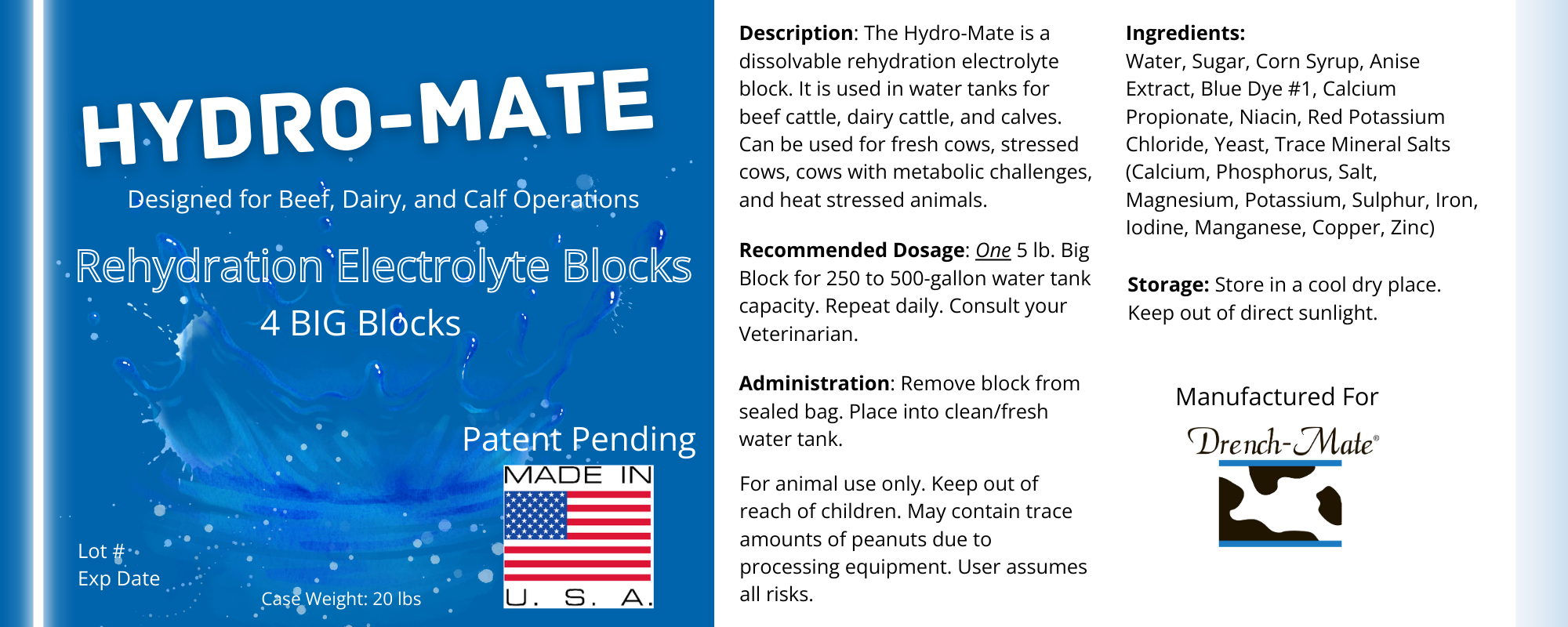 Hydro-Mate is a fast-dissolving electrolyte block designed to encourage water intake.