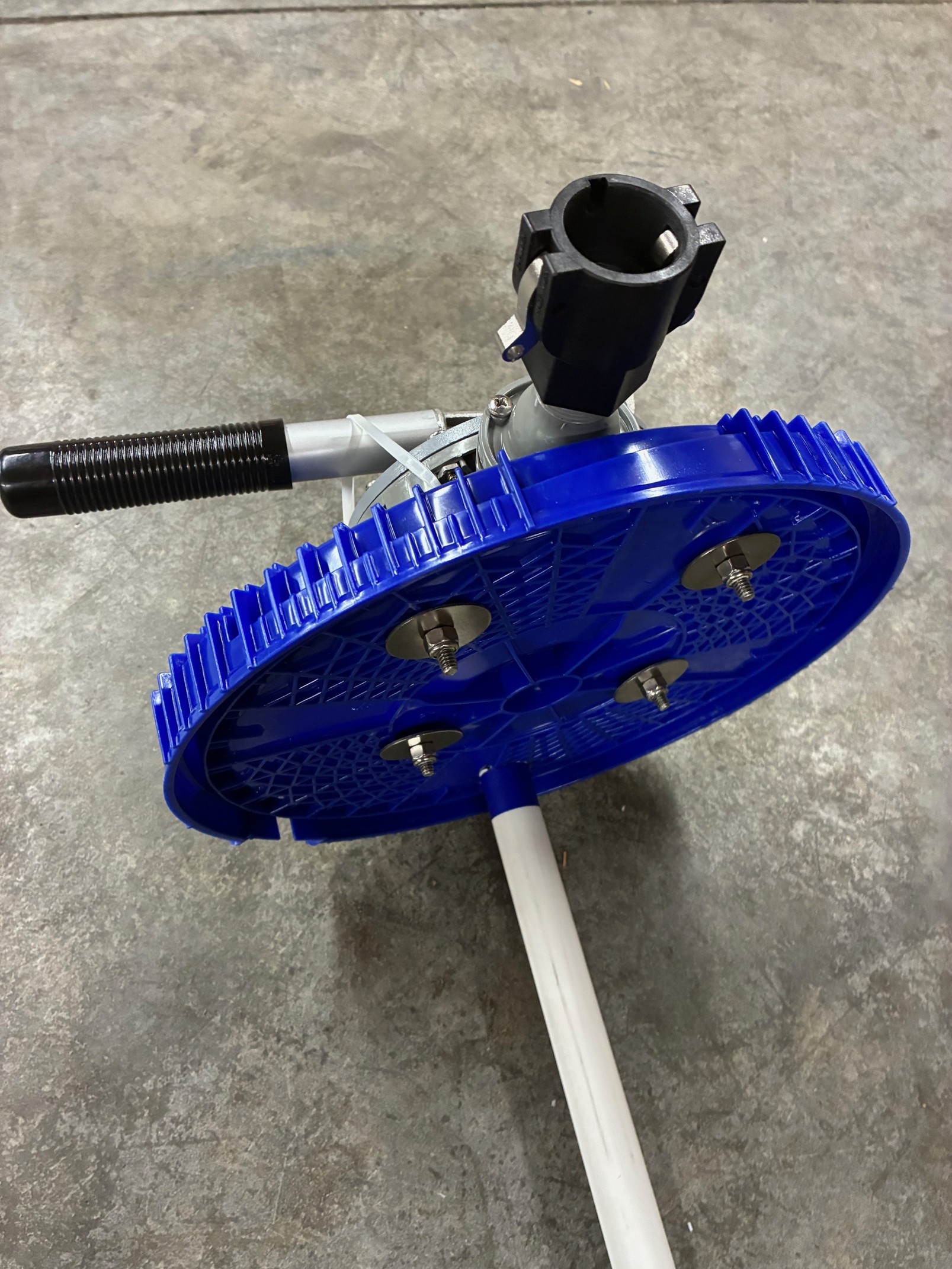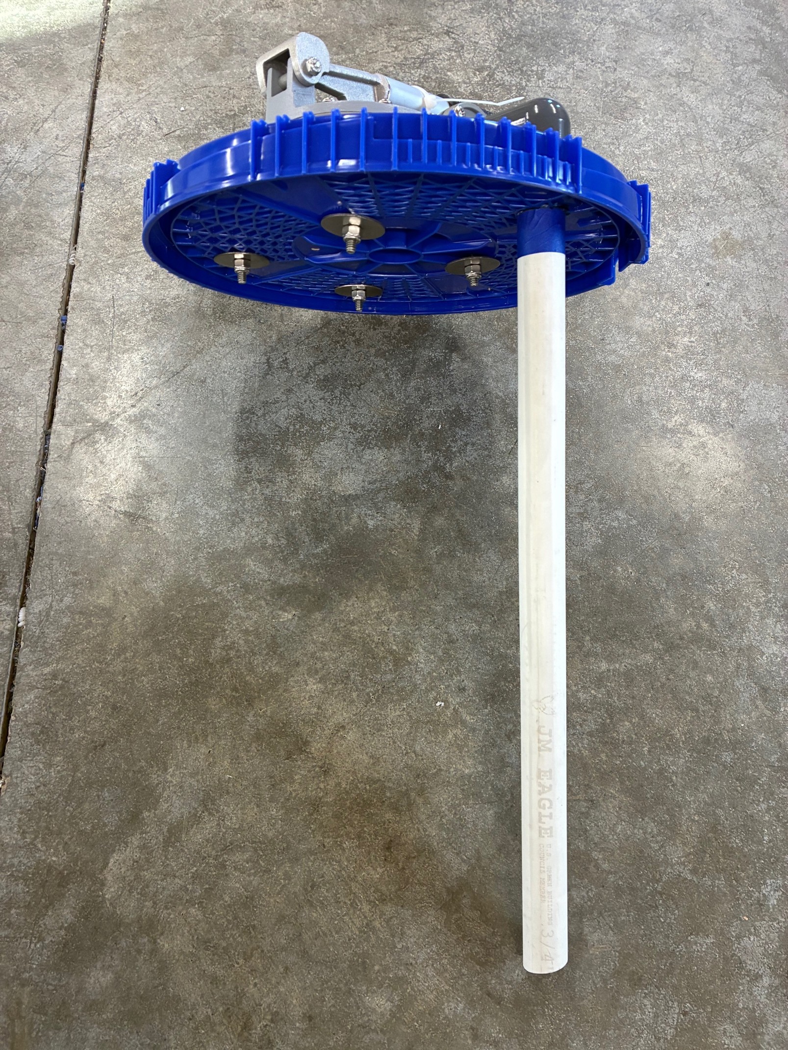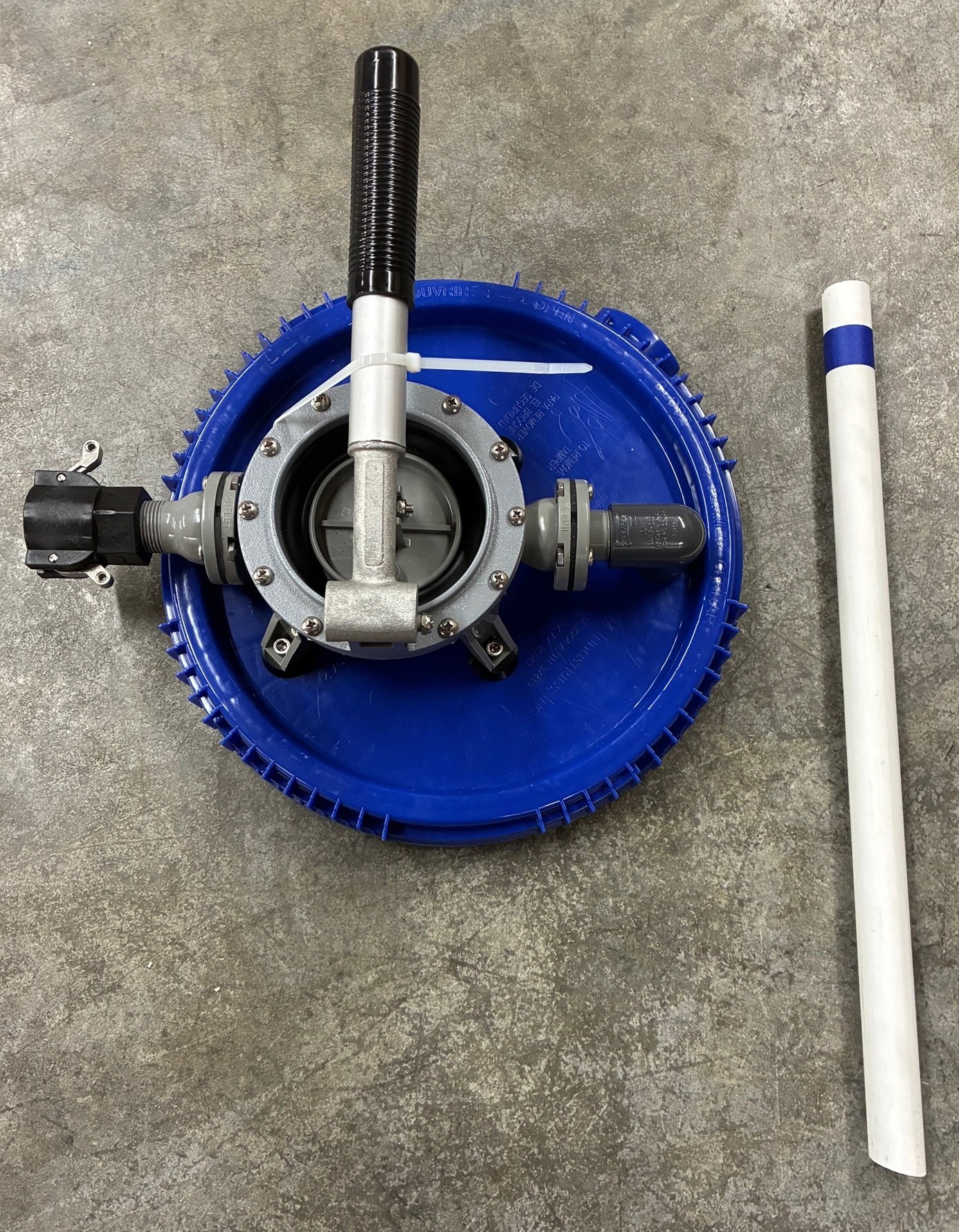 Includes a pump mounted to a bucket lid and the white suction pipe.